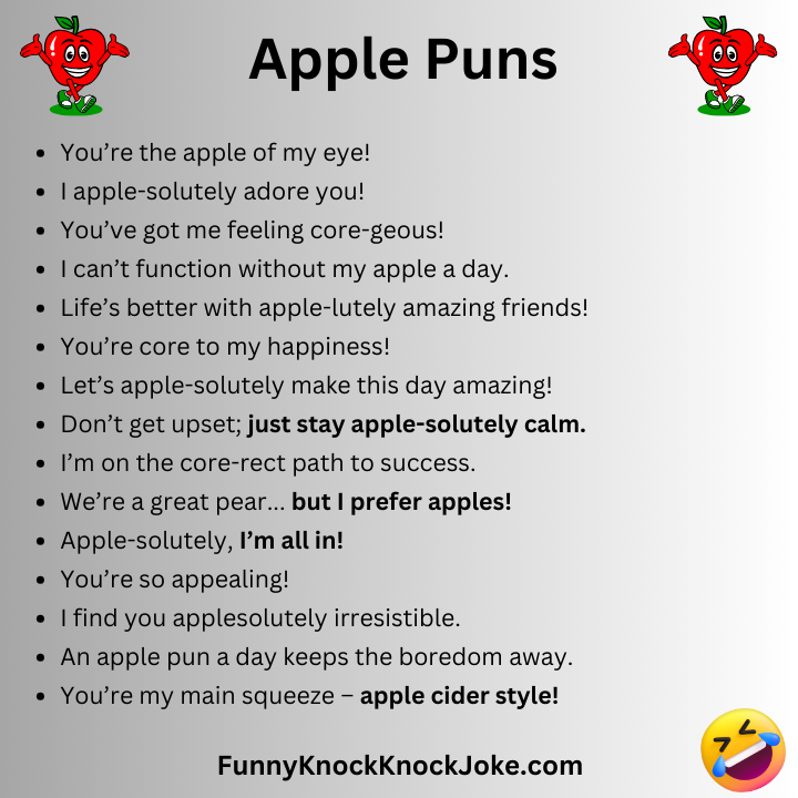 Here are some timeless apple puns that never fail to delight: