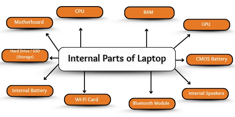 Internal parts are hidden within the laptop but are vital for its operation. These components handle processing, storage, connectivity, and overall performance.
